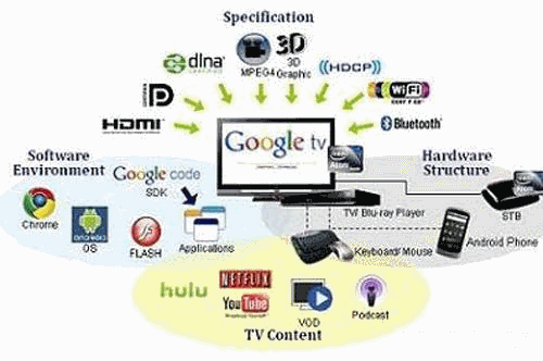 GoogleTV是一個整合計算機(jī)系統(tǒng)、媒體播放與網(wǎng)絡(luò)應(yīng)用的概念型電視平臺,由Google公司主導(dǎo)研發(fā),并且免費(fèi)開源發(fā)布。GoogleTV的應(yīng)用涵蓋下列領(lǐng)域: