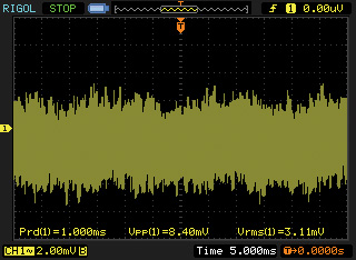 圖4是用DM3068的數(shù)據(jù)繪圖功能重新測(cè)試該電源電壓得到的電源波形,圖形左側(cè)是歷史數(shù)據(jù)的波形,圖形右側(cè)是實(shí)時(shí)波形。從實(shí)時(shí)波形中可以清楚地看到幅度約為4.4mVpp的正弦紋波,進(jìn)一步推算可以得出正弦波頻率約為50Hz。能量如此強(qiáng)的50Hz信號(hào)會(huì)給精密電路帶來(lái)很大的干擾。