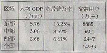 基于互聯網寬帶普及率與人均GDP的關系分析,對我國東中西部互聯網寬帶用戶分布進行預測,到2011年年末,全國互聯網寬帶用戶數可達1.49億。