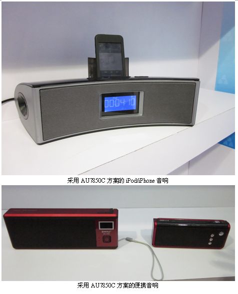 AU7850C集成了豐富的外設(shè)和接口,包括藍(lán)牙、iPod/iPhone docking接口、數(shù)字音頻廣播接口,方便用戶進(jìn)行個(gè)性化設(shè)計(jì);支持溫度、頻譜、電池電量顯示,中文歌詞同步顯示;集成16位DAC以保證高品質(zhì)音頻輸出。芯片集成度高、待機(jī)功耗低、系統(tǒng)設(shè)計(jì)簡(jiǎn)單,BOM成本低。