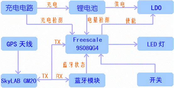 藍牙GPS模塊也是一個小小的便攜設(shè)備,需要實現(xiàn)電源的管理、GPS數(shù)據(jù)的處理、藍牙狀態(tài)的判斷以及點亮指示燈等功能。這都要求使用一個MCU來協(xié)調(diào)控制整機的工作。
