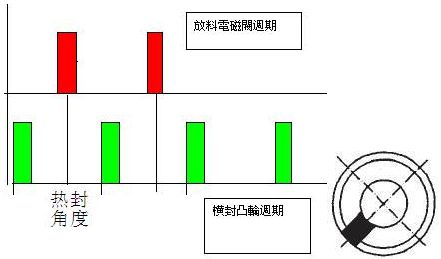 根據熱封的電子凸輪周期0~360設定促發開啟放料閥即可。比如,在開機前假設設定50度,放料。實際出現夾料。調整促發角度到150,直到合適為止。因為落料時間足夠短,一個周期按120袋來算也有500ms。