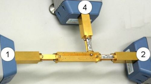 UOSM 校準技術的優點是可以利用一個未知的直通件作為標準件這一未知的直通件僅要求具有很好的正、反向互易性,因此,該未知直通件不要求具有良好的匹配和低損耗特性甚至價格低廉的、帶帶標準法蘭盤的波導管節、波導彎頭和波導扭轉接頭,只要具有互易特性都可以作為直通件在校準后所有對輸出端口方向的改變都會造成(可避免的)精度損失,因此在這個例子當中,一個H面的波導彎頭在波導測試端口1和4,以及測試端口2和4之間建立直通波導測試端口1和2是通過兩個測試端口的直接連接而建立直通的
