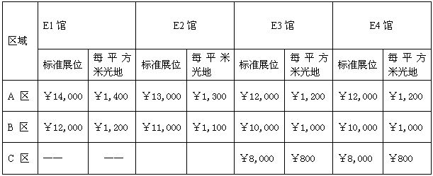 (A) 標準展位(每個標準展位為3米×3米=9平方米) 標準展位設(shè)施配備為:三面鋁合金圍板、滿鋪地毯、兩只射燈、兩把折椅,一張問詢桌和一個220V/500W的電源插座,楣板上書中英文公司名稱。單個拐角位置展位費增加10%