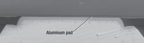 設(shè)計(jì)。WCSP 供應(yīng)商在從焊盤(pán)到區(qū)域陣列范圍 (area array pattern) 的什么地方構(gòu)建布線所需的 RDL 存在爭(zhēng)議。晶圓加工廠方法(請(qǐng)參見(jiàn)圖 1)中,通常將一個(gè)額外增加的鋁層用于這種連接。這種方法的缺點(diǎn)是凸塊支持會(huì)占用很多的頂層金屬面積。