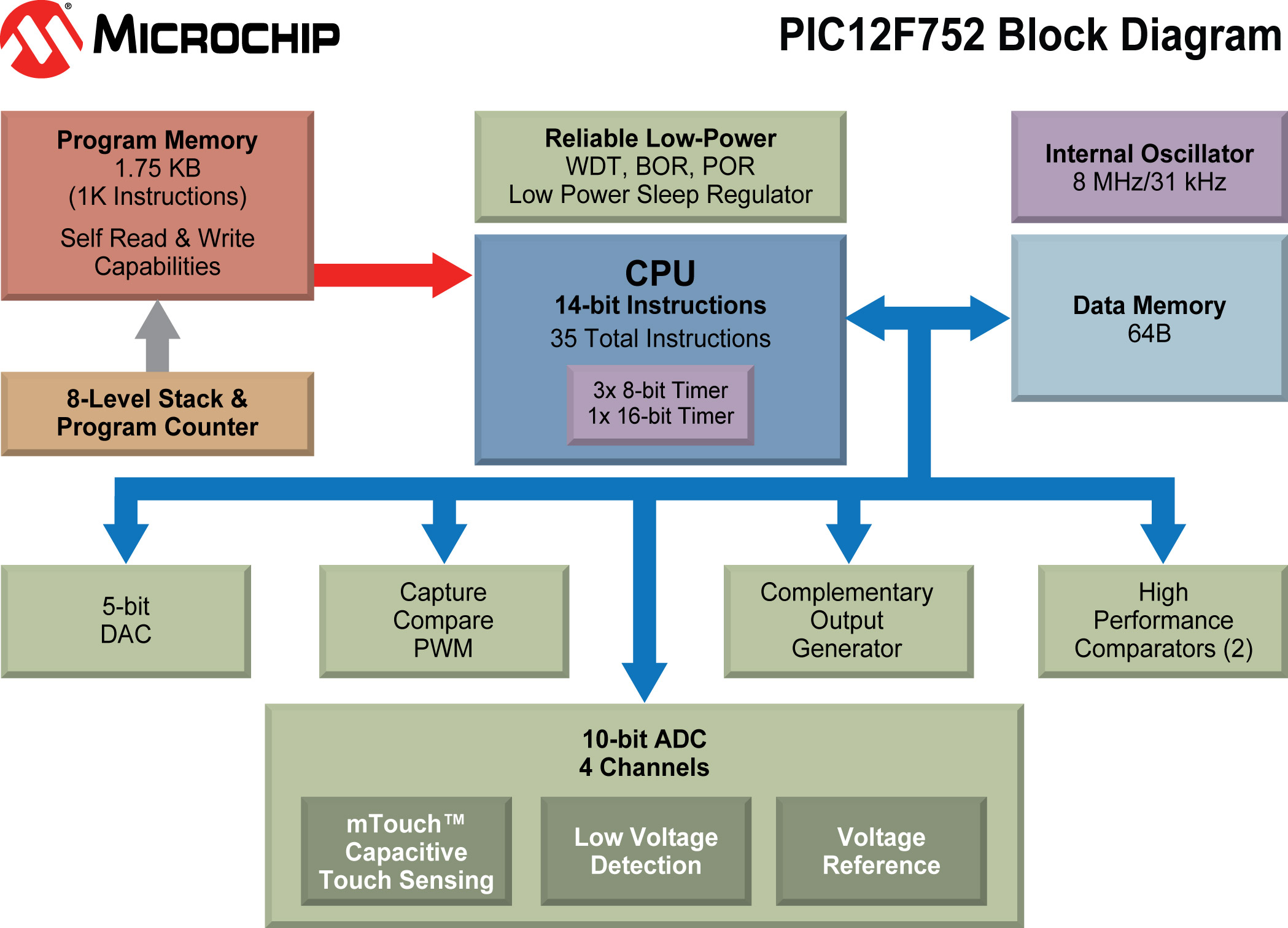 Microchip公司安防、單片機及技術開發部副總裁Steve Drehobl表示:“憑借全新COG和50 mA驅動能力等眾多的外設增強,PIC12F752 MCU可為LED照明和電池充電等應用提供高效率電源轉換。在仍保持為通用產品系列的同時,PIC12F752 MCU提供了一個在各種應用中集成智能化的多功能平臺。無論是用在照明、電源或家電應用中,這些MCU都可以實現更高的效率,并可降低成本和改善用戶體驗。”