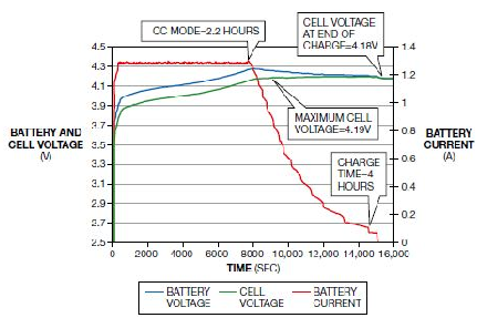 使用標(biāo)準(zhǔn)的CC/CV算法就可以對(duì)一個(gè)鋰化學(xué)電池的充電時(shí)間做出近似的估計(jì),方法是用電池容量(安培小時(shí))除以恒流模式下的充電電流(安培),得到的值再乘以充電時(shí)間1.3小時(shí)。通過正確的設(shè)計(jì)和對(duì)CC/CV模式算法的智能調(diào)整,可以得到更接近的計(jì)算值,但前者是一個(gè)良好的開始。另外,如果因?yàn)椴涣荚O(shè)計(jì)或不精確的電池電壓測(cè)量,使CC到CV模式的轉(zhuǎn)換開始太早,那情況就會(huì)糟得多。