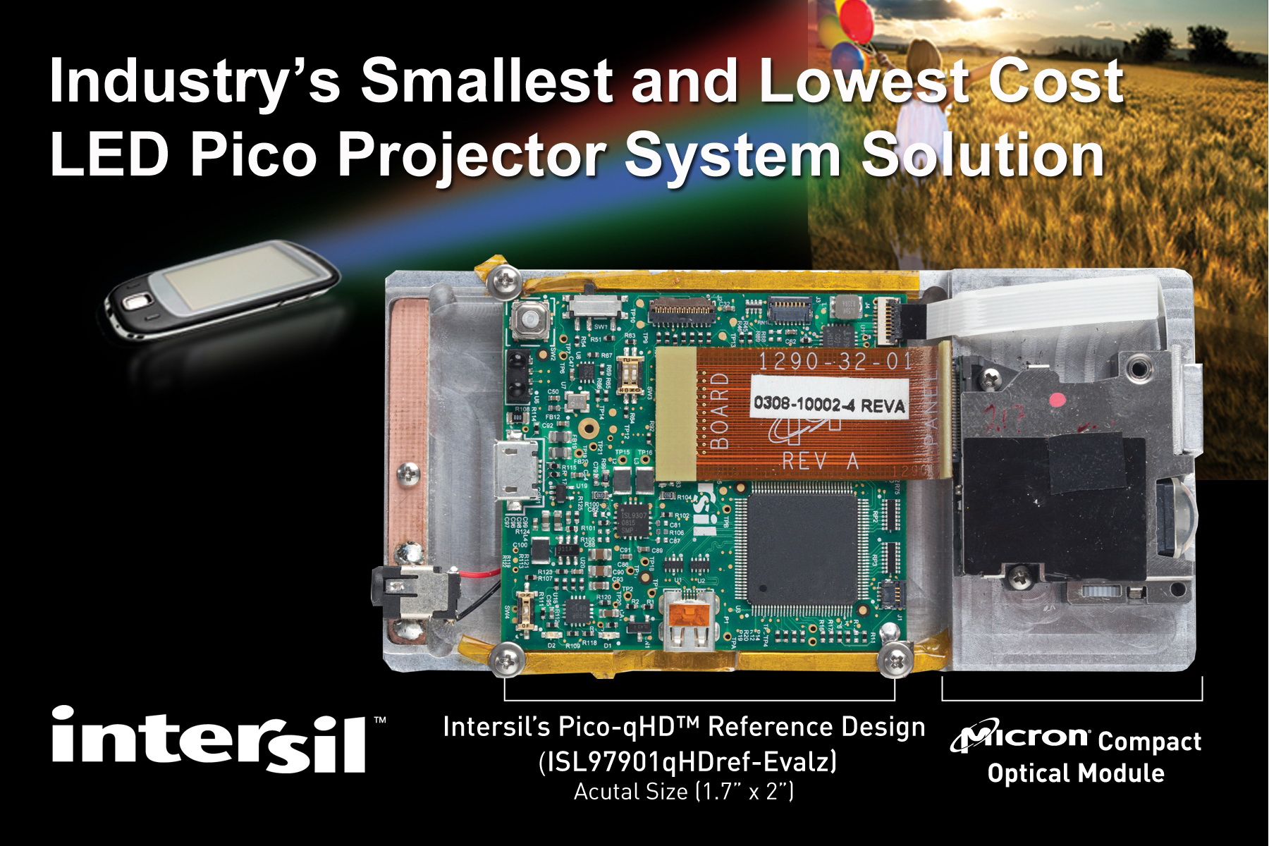 全球高性能模擬混合信號半導(dǎo)體設(shè)計和制造領(lǐng)導(dǎo)廠商Intersil公司日前天宣布,推出全球最低成本微型投影儀系統(tǒng)Pico-qHD™,以及已達(dá)到生產(chǎn)就緒階段的業(yè)內(nèi)最小的基于LED的LCoS微型投影儀解決方案。