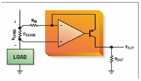 理想情況下,電流和電壓檢測都不應影響所連接的負載。這意味著電壓檢測器件應該具有近似無窮大的輸入阻抗,這樣才能確保對負載沒有明顯的分流。相反,電流檢測應該具有近似為零的輸入阻抗,這樣才能確保加到負載上的電壓不會明顯降低。高端電流檢測電路(放大器+電阻器)應滿足這兩項要求。用來檢測RSENSE上電壓的放大器必須具有高輸入阻抗,而用來檢測負載電流的電阻則必須非常小。