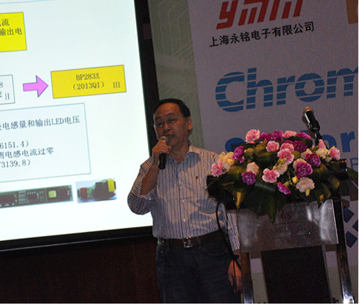 作為專業的LED照明驅動IC設計公司,晶豐明源帶來了《室內LED照明電源驅動芯片及應用技術》。顏總講述其產品覆蓋LED室內照明所有應用,并向最終用戶提供最優性價比的LED 照明電源解決方案。他認為,散熱和性價比是目前最大的問題。在接受記者采訪時,他提到,關注非隔離電源最近增長很快,而線性電源可能明年會崛起。