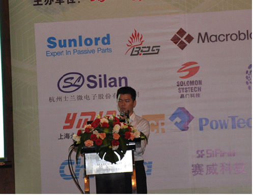 士蘭微產品應用工程經理蔡擁軍發表了《照明驅動器新產品及方案》的演講,主要從DC-DC LED驅動器和AC-DC LED驅動控制器及未來產品的趨勢作報告。為國內規模最大的集成電路芯片設計與制造一體(IDM)的企業之一,士蘭微在今年新推出了幾款LED驅動控制器產品。以非隔離AC-DC控制器為主,例如SD6900。隔離型AC-DC產品推出了SD6955。