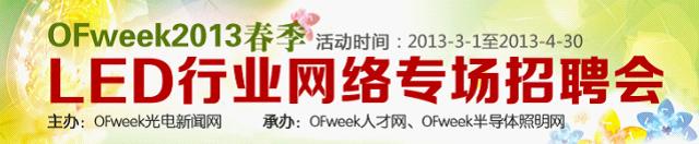 導(dǎo)讀:新年招聘旺季序幕已經(jīng)拉開,您是否正在茫茫人海大潮中苦尋理想職位?或意欲辭職蠢蠢欲動?新年伊始,OFweek為你推薦LED行業(yè)的好工作!3月1號~4月30日,由中國高科技行業(yè)綜合門戶網(wǎng)站-OFweek主辦,OFweek人才網(wǎng)、OFweek半導(dǎo)體照明網(wǎng)承辦的“OFweek2013春季LED行業(yè)網(wǎng)絡(luò)專場招聘會”日前啟動。
