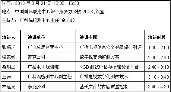 在同期舉行的“CCBN 2013廣播影視發展論壇”的“廣播電視測試技術與儀器”分會場上,泰克公司還將作為獨家測試測量儀器提供商受邀參與主題為“廣播電視新技術體系下,廣電行業設備與系統檢測與測試的未來發展趨勢”的研討,并帶來兩場泰克測試方案公開課。