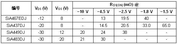 SiA467EDJ、SiA437DJ、SiA449DJ和SiA483DJ進行了100%的Rg測試。這些MOSFET符合JEDEC JS709A的無鹵素規定,符合RoHS指令2011/65/EU。