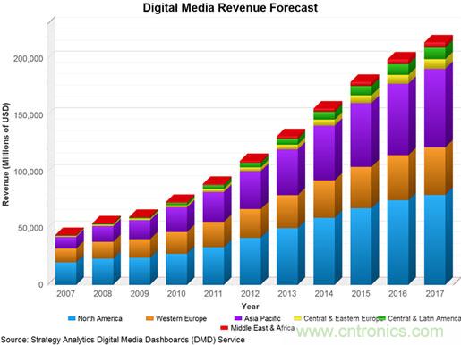 圖1:數字媒體市場收益規模預測