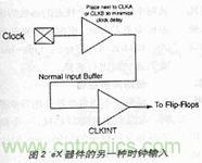有時用戶很難阻止時鐘進入器件。在此場合,用戶可使用與CLKA或CLKA相鄰的正常輸入引腳并在設計中加進CLKINT。這樣,時鐘將通過靠近時鐘引腳的正常輸入進入器件,再通過CLKINT向器件提供時鐘資源。