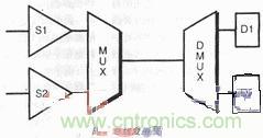 高 密度設計的布局必須留有空地并相當地展開,才可完成,這便導致連線長,每個線上開關多,這些因素產生不良的時序結果并增加了功耗。此外,塊中的邏輯趨向于 分類集結在一起,總線跨越不同塊時需走過較長的距離。在一個設計中采用時分復用寬總線技術,可減少總線的數量,有利于時序和功耗。再者,在DSP設計中, 數據是相關的,這表明大多數數據位并未改變狀態。攜帶相關數據的總線應盡量復用在一起,進一步減少MUX、DEMUX邏輯中的開關活動(圖5)。