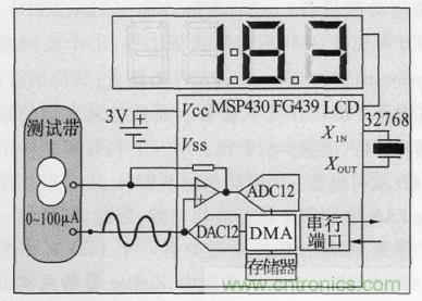 系統中,醫療傳感器模塊主要實現以下幾種功能:體溫、血壓、血氧和血糖的測量等。其中,體溫測量集成了北京邁創公司所生產的YSI體溫探頭,血壓測量集成了邁創公司的KNM無創血壓測量模塊,血氧測量集成了邁創公司的SWS01血氧測量模塊。