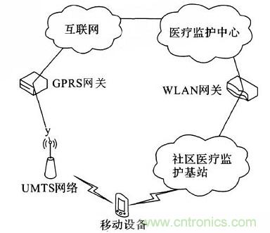 系統中包括無線個人網絡(wireless person2al area network,WPAN ) 、ZigBee網絡以及一系列醫療監護網絡的醫療傳感器節點。本系統具有良好的擴展性,例如醫護人員在急救途中或在其他醫院可以分別利用WLAN /UMTS網關和互聯網與系統進行信息交互。