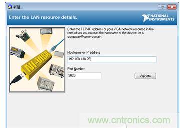 啟動(dòng)Masurement & Automation Explorer軟件,選擇設(shè)備和接口,在添加網(wǎng)絡(luò)設(shè)備中,使用Manual Entry of Raw Scoket(手動(dòng)輸入原始SOCKET)方式連接,ZDS2024示波器采用端口號(hào)5025來(lái)接收SCPI命令。如圖2和圖3所示。設(shè)置好后,可進(jìn)行測(cè)試,確保連接成功。