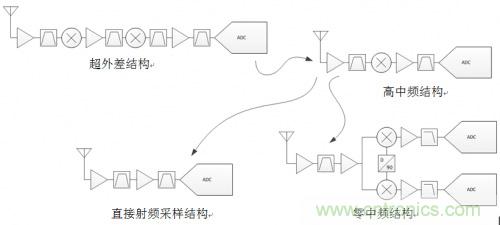 十年前,大多數(shù)無(wú)線電設(shè)備建立在較為基礎(chǔ)的超外差結(jié)構(gòu)上,且具有多個(gè)下變頻級(jí)。當(dāng)時(shí),我們見證了高 IF (中頻) 結(jié)構(gòu)中出現(xiàn)單個(gè)下變頻級(jí)的變化。這得益于ADC帶寬、采樣速率與性能等的顯著改善,這些顯著的改善使第二或第三奈奎斯特區(qū)域的信號(hào)采樣得以實(shí)現(xiàn)。ADS62P45 ADC便是引領(lǐng)這次變化的一個(gè)典型代表。現(xiàn)在,ADC技術(shù)進(jìn)一步得到改進(jìn)與提升,使得無(wú)線電中最后一個(gè)下變頻級(jí)也得以消除,從而支持直接