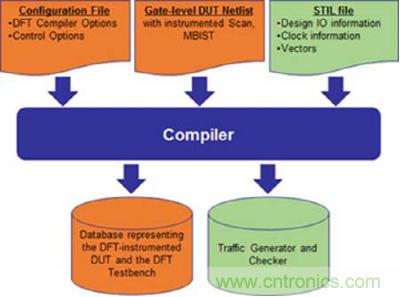 用于硬件加速仿真的 DFT App 改變了硬件加速器在開發(fā)階段的編譯流程和運(yùn)行時間。這將為編譯流程和運(yùn)行時間帶來重大變化。具有掃描和 MBIST 結(jié)構(gòu)的門級設(shè)計被載入硬件加速仿真的編譯器。編譯器創(chuàng)建了用于讀取Stil文件中測試向量的測試結(jié)構(gòu),然后將這些向量應(yīng)用到可綜合的待測器件 (DUT) 以及進(jìn)行輸出比較。編譯器將用戶網(wǎng)表重新編譯并合成到一個能夠兼容硬件加速仿真的結(jié)構(gòu)化描述中。編譯器創(chuàng)建了用于讀取Stil文件中測試向量的測試結(jié)構(gòu),然后將這些測試向量用到可綜合的待測設(shè)計上,再將網(wǎng)表重新編譯并合成到一個能夠兼容硬件加速仿真的結(jié)構(gòu)化描述中。測試控制架構(gòu)還包括比較輸出的機(jī)制。參見圖 1。