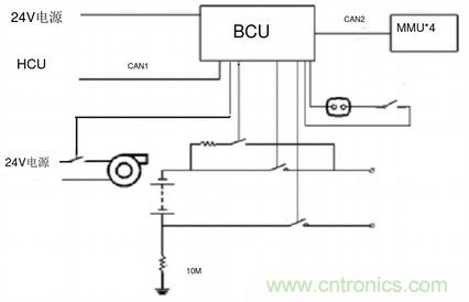 繼電器,每組MMU通過CAN2總線將數(shù)據(jù)發(fā)送到BCU,BCU作出統(tǒng)一管理并將數(shù)據(jù)發(fā)送到HCU。管理系統(tǒng)主要的故障包括電池組/電池單元過壓及欠壓、過流、過溫、CAN通訊異常、單元控制故障等。