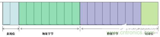 DALI數據分為前向幀和后向幀兩類。前向幀的傳輸方向是從主控單元到從控單元,由19 bit組成,包括1bit起始位、8 bit地址位、8 bit數據位和2 bit停止位,如圖:4所示;