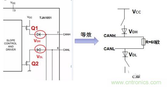 圖6 CAN收發器等效結構