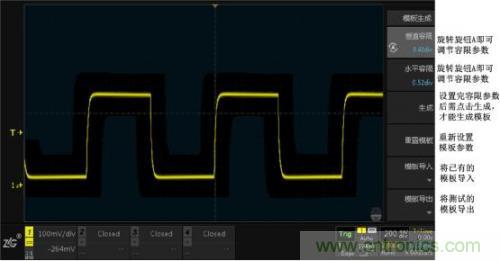 模板測試功能主要用于信號質量的評估,通過在示波器中設置模板對波形進行實時測試,統計在規定的測試條件內測試的次數、失敗的數據幀個數、失敗比率、測試時間等,并顯示測試的結果和輸出測試的數據。測試在設計和制造過程中能夠節省時間和費用,并確保客戶能夠更快收到更高的質量產品。