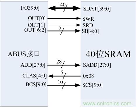 40位SRM模塊與NIOSII通過ABUS連接,實(shí)現(xiàn)正確的時(shí)序讀寫操作。測試時(shí),一次只測試8位,分5次完成所有空間的測試。如圖2-4。表4是詳細(xì)的信號連接說明。