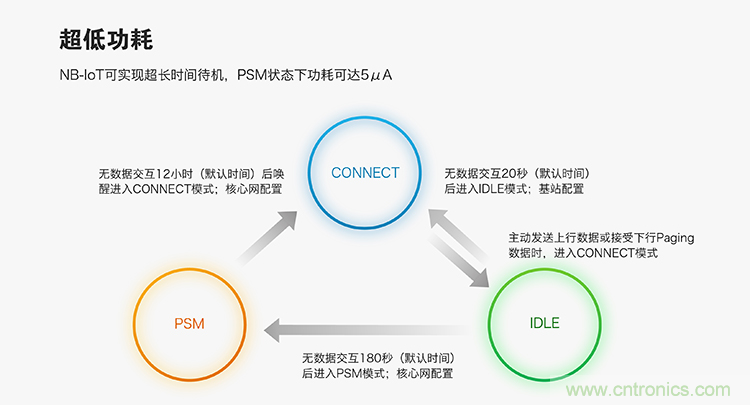 不僅優化模塊內部的嵌入式軟件和AT指令的易用性,更是站在用戶角度考慮端到云的應用場景,提供透明傳輸UDP模式,提供CoAP通訊組件,嚴格的重傳機制,保障數據發出必答,不達報警,更有透傳云服務,讓用戶零編程即可使用NB-IoT搭建系統。