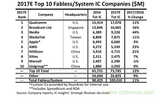 2017年的世界全十Fabless