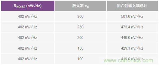 表2. 運算放大器噪聲貢獻