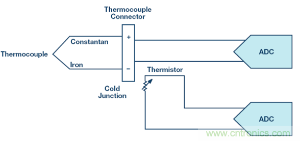 使容性 PGA 性能與阻性 PGA 相當的可行辦法是以更高的電源電壓對電橋供電。比如,以±3.3 V 雙極性電源對電橋供電,從而增加應變計的靈敏度,但代價是更高的系統復雜性和功耗。可能會得益于容性 PGA 的另一個例子是采用電阻式溫度檢測器(RTD)或熱電偶的溫度測量應用。常用 RTD 電阻(比如 PT100)可以用來直接檢測溫度,或間接檢測熱電偶的冷結,如圖 9 所示。