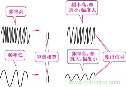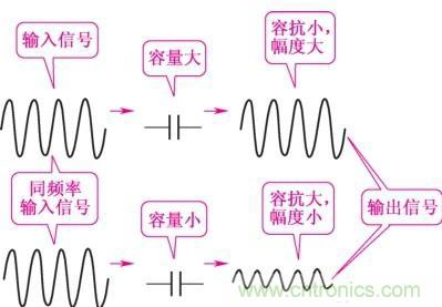 在交流電的頻率不同和電容器容量大小不同的情況下,電容器對交流電的阻礙作用——容抗也不一樣。