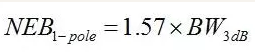 對于單極點低通濾波器,它是–3dB帶寬的1.57倍,寫成公式就是: