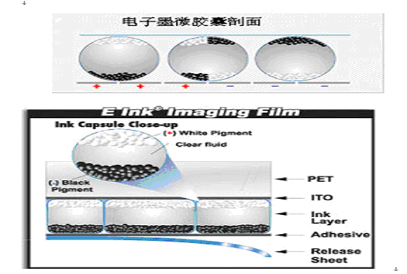 目前,世界上主流的電子墨水技術(shù)有5種,它們分別是微膠囊電泳、雙色擰轉(zhuǎn)球(bichromal)、膽甾型液晶(ChLCD)、電濕技術(shù)和電致變色技術(shù)。其中,E-Ink公司的電泳技術(shù)比較成熟,應(yīng)用相對廣泛。