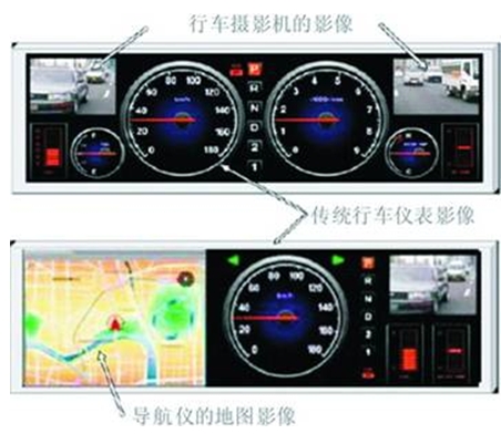 以上介紹的內(nèi)容大多集中在汽車導(dǎo)航儀的液晶顯示器,最近幾年汽車廠商提出,利用液晶顯示器取代傳統(tǒng)機(jī)械式行車信息指針儀表。