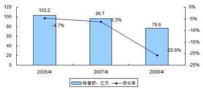 圖1 2006-2008年中國DVD播放機(jī)銷售額規(guī)模與增長
