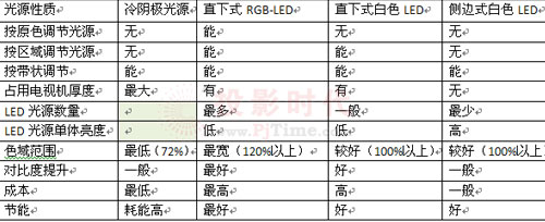 其中,直下式RGB-LED光源技術在綜合顯示優勢中絕對第一,但是價格成本也是最高的。成本最高注定了這種方案不具有市場普及的可能。但是在一些叫專業的產品應用中,該技術還是渴望通過高性能吸引用戶的青睞。三種LED光源方案的競爭,其實只是在直下式白光和側邊式白光上發生。
