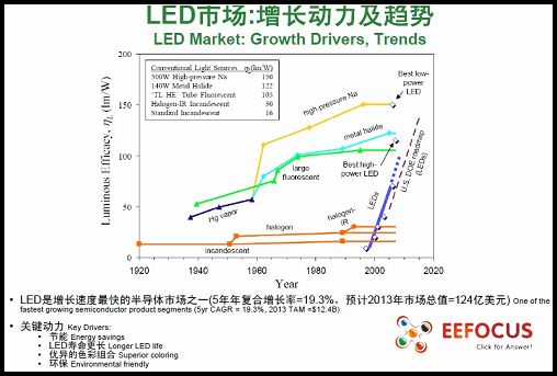 Laurent Jenck 說LED今日的發展態勢像極了昔日的IC產業,前期主要集中在軍隊、科研等成本不敏感領域。然后隨著成本和效率的改善,慢慢走近千家萬戶。隨著應用的增 多,LED照明的價格/成本將逐步趨向消費應用。預計未來5年,LED照明將走進普通家庭。“隨著量產而來的合理價格,LED未來的發展市場還是可見一斑 。”