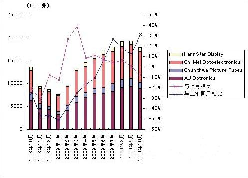 - 2009年10月臺灣大尺寸液晶面板供貨量比上月減少7.5%,為1788萬塊