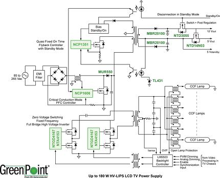圖2:安森美半導體32英寸高壓LIPS液晶電視電源GreenPoint®參考設計功能框圖