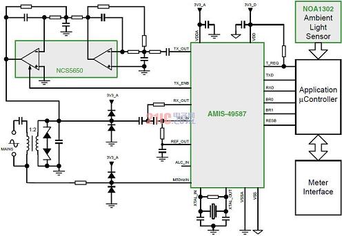 有利的是,設計人員采用安森美半導體的AMIS-49587電力線載波(PLC)調制解調器、PLC線路驅動器NCS5650和諸如NOA1302這樣的環境光傳感器,基于電力線輕易地構建聯網型LED街燈智能控制系統(參見圖4)。其中,安森美半導體的環境光傳感器包含的輸出類型,如NOA1302和NOA1305提供的是數字輸出,而NOA1211為模擬輸出。這些光傳感器的工作電流極低,在100流明光輸出條件下分別僅為58 μA、550 μA和115 μA,因而對系統能效的影響極小。