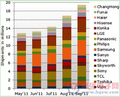 2011年5~9月液晶電視品牌商生產(chǎn)計(jì)劃 (單位:百萬(wàn)臺(tái))
