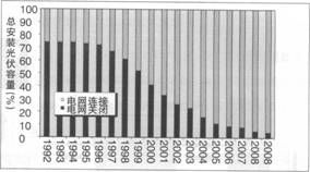 IEA PVPS的數據顯示,2009年該項目成員國共安裝光伏容量6.2GW(全球安裝約7GW),其中超過95%為并網系統,如圖1。