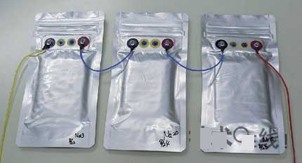 電容器電池的正極由直徑約0.5nm的超細導電性高分子變成膜狀之后形成。此次試制的電容器電池單元在作為集電體的30μm厚鋁箔表面生成了50μm厚的導電性高分子膜。由于負離子可進入并吸附在高分子膜內部,因此可獲得較高的靜電容量。