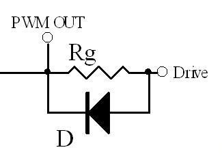 以上討論的是MOSFET ON狀態時電阻的選擇,在MOSFET OFF狀態時為了保證柵極電荷快速瀉放,此時阻值要盡量小.通常為了保證快速瀉放,在Rg上可以并聯一個二極管.當瀉放電阻過小,由于走線電感的原因也會引起諧振(因此有些應用中也會在這個二極管上串一個小電阻),但是由于二極管的反向電流不導通,此時Rg又參與反向諧振回路,因此可以抑制反向諧振的尖峰.這個二極管通常使用高頻小信號管1N4148.