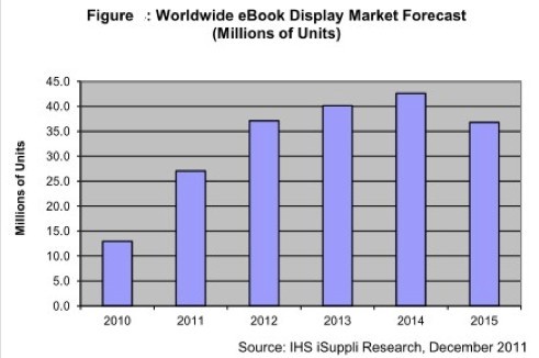 據IHS iSuppli公司的中小型顯示器市場追蹤報告,2011年全球純電子書閱讀器出貨量將增長一倍以上,一種新型彩色顯示技術正在浮現,代替傳統的單色產品。